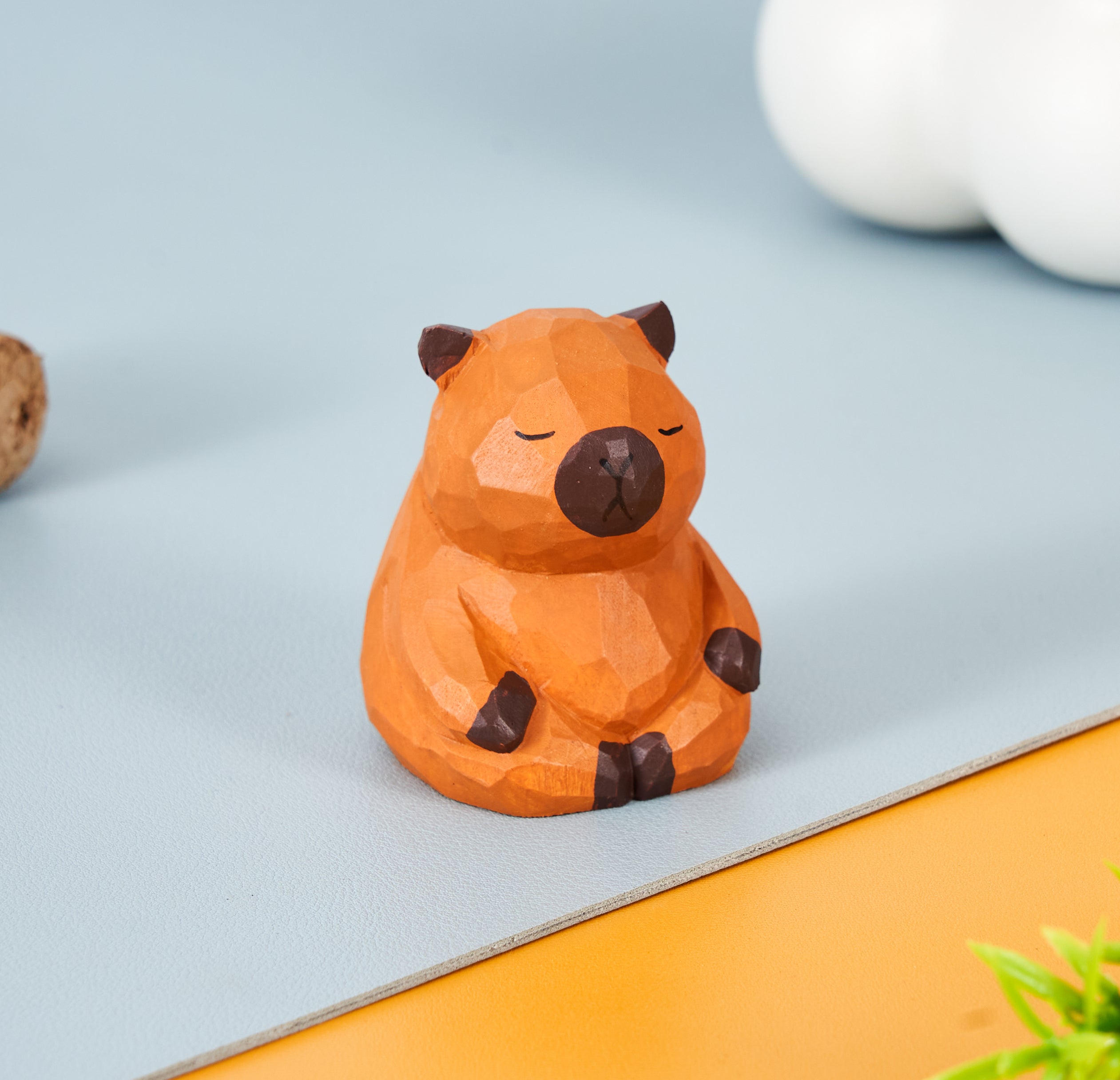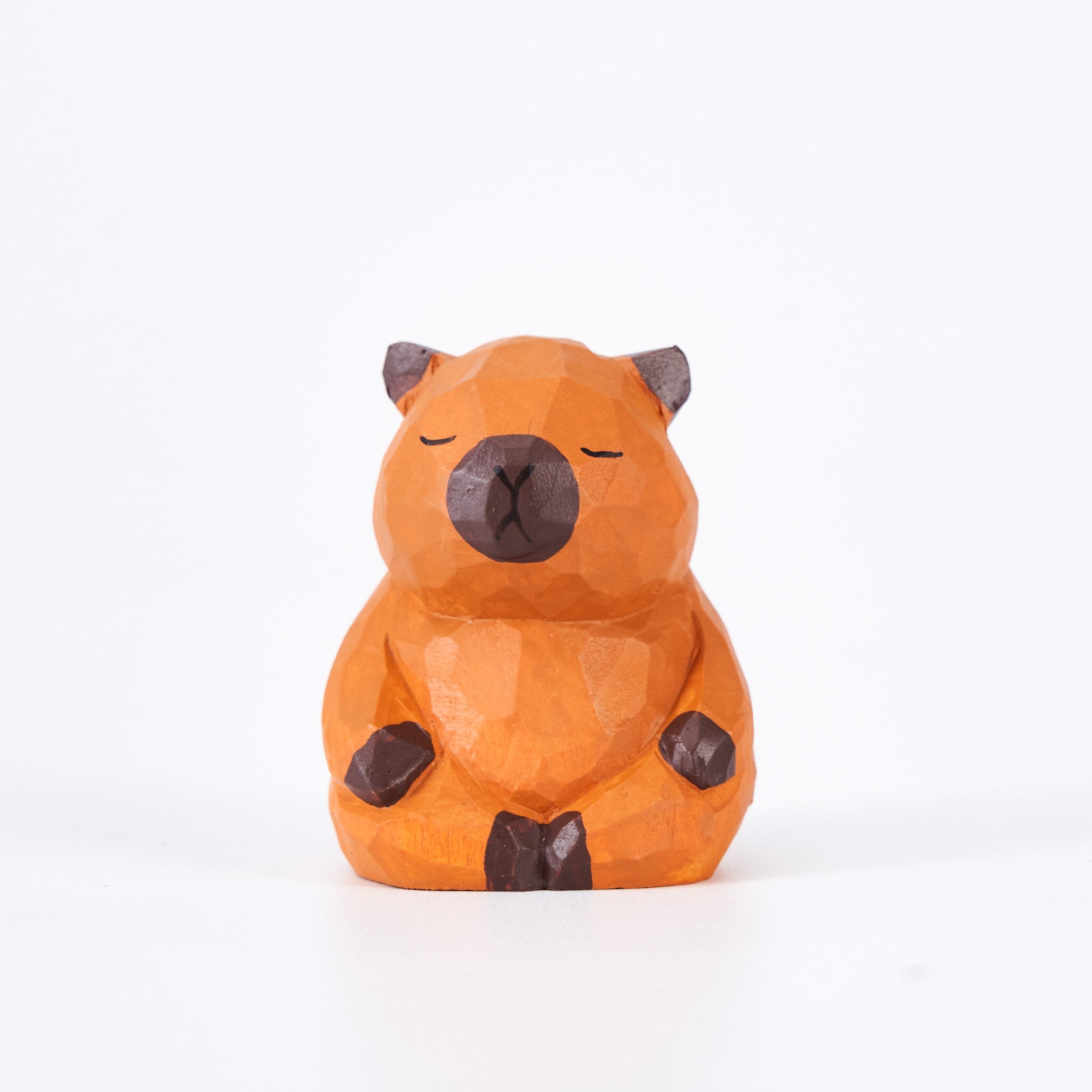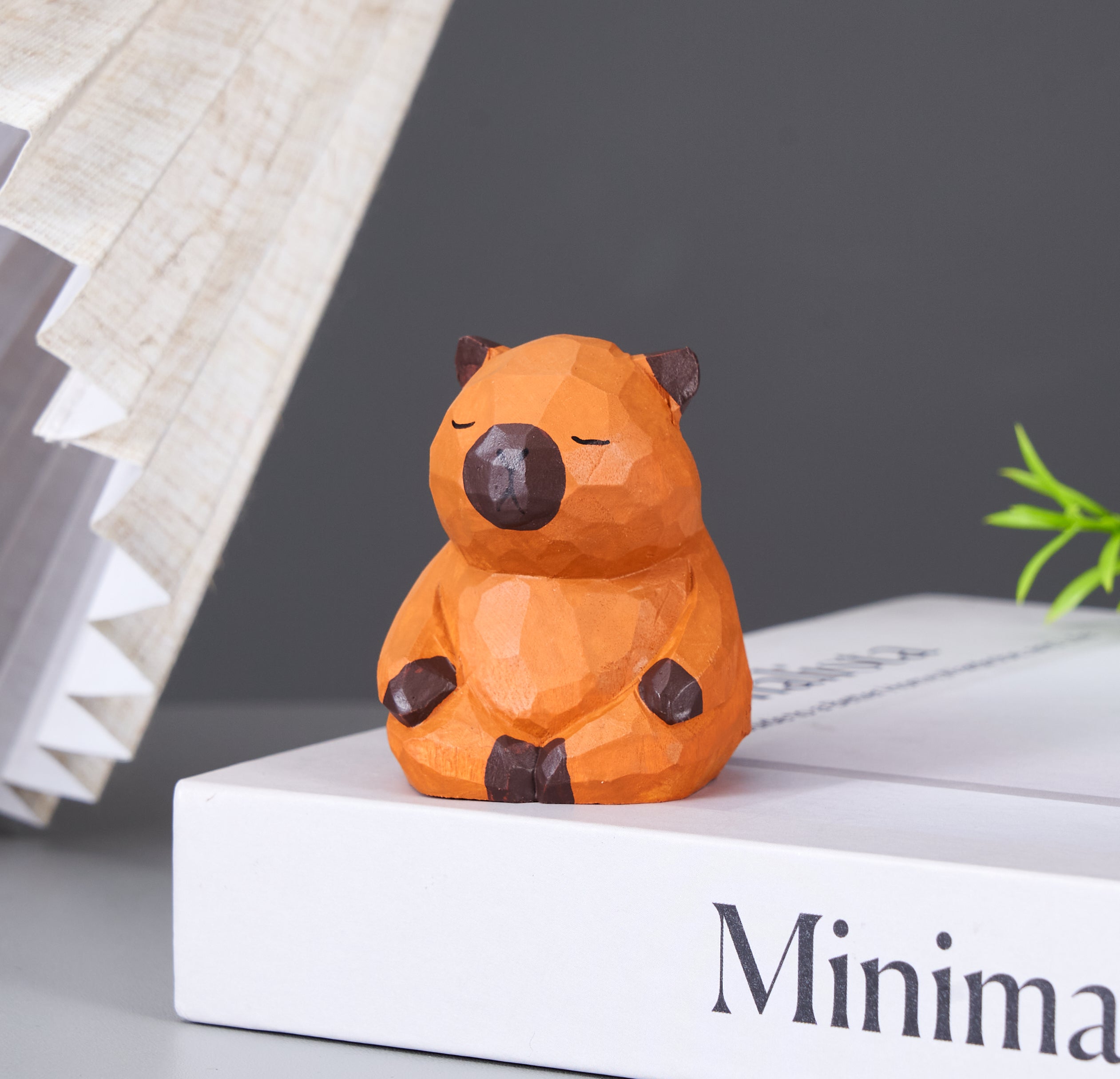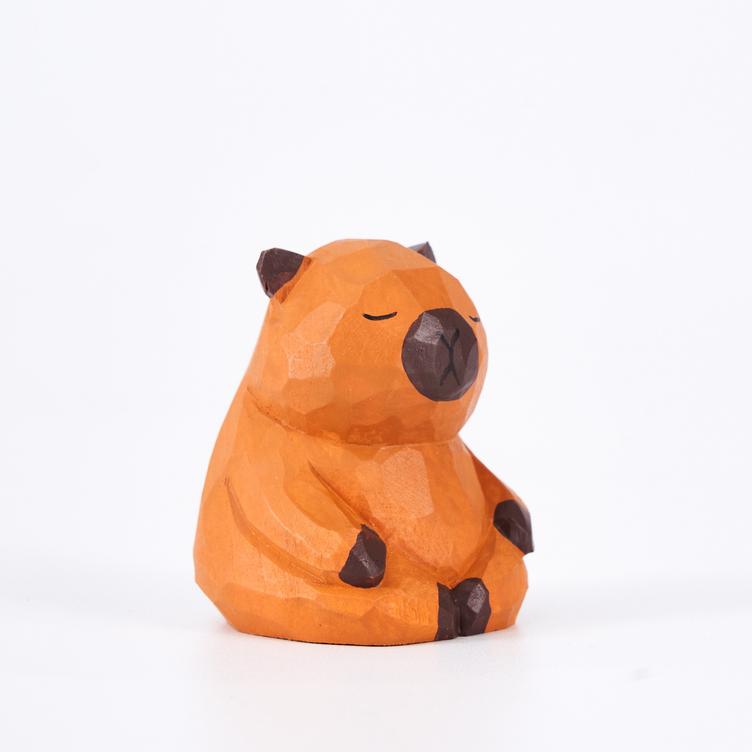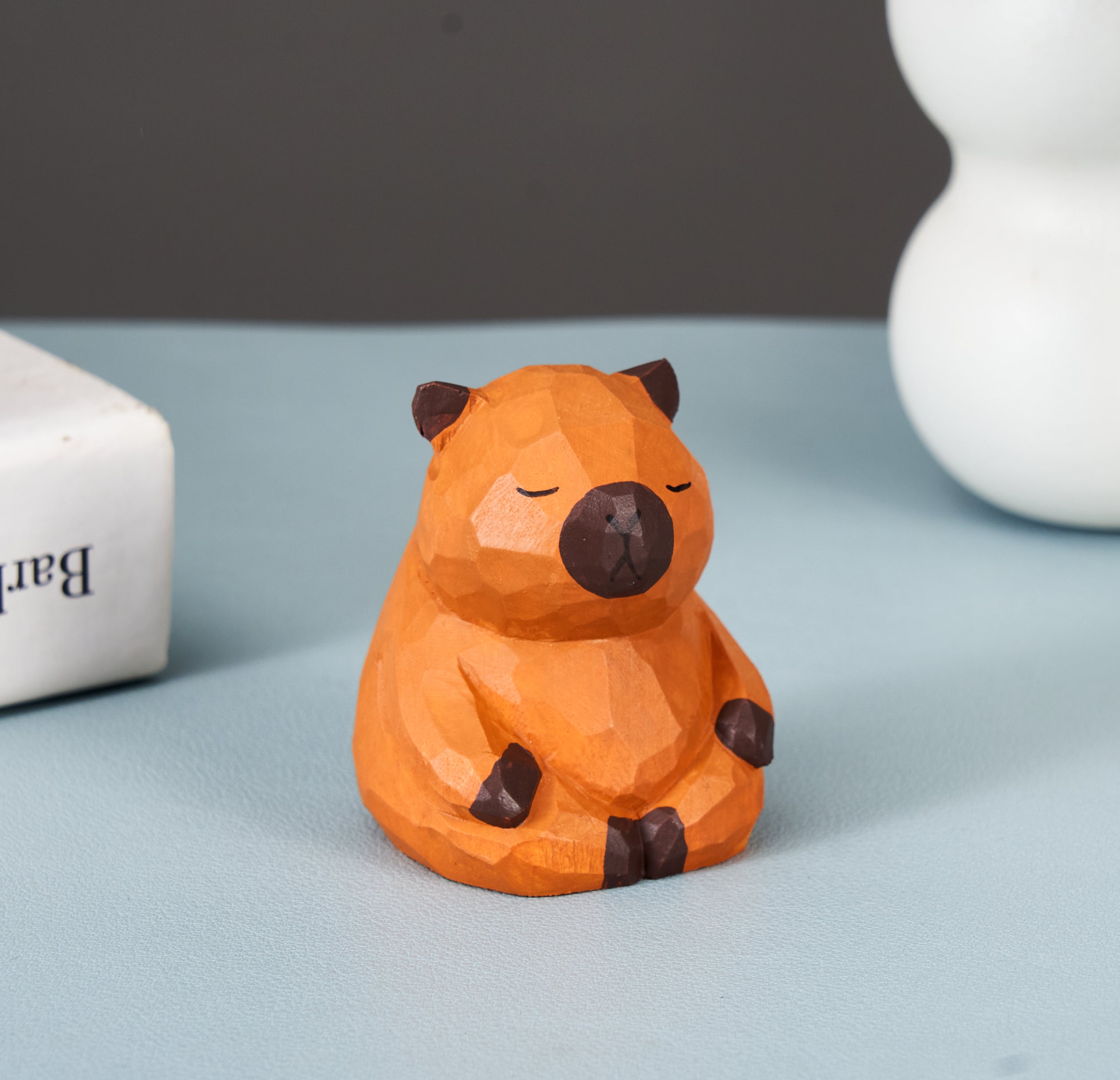 Cleo Carved Wooden Capybara in Peaceful Rest