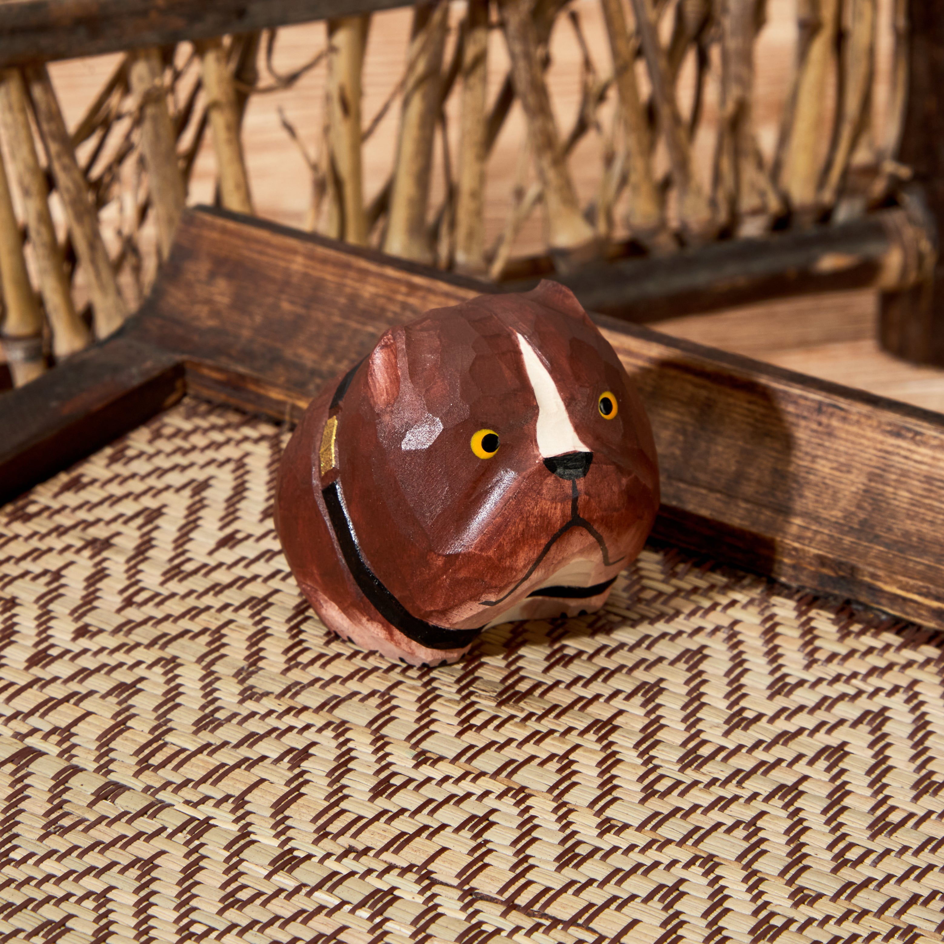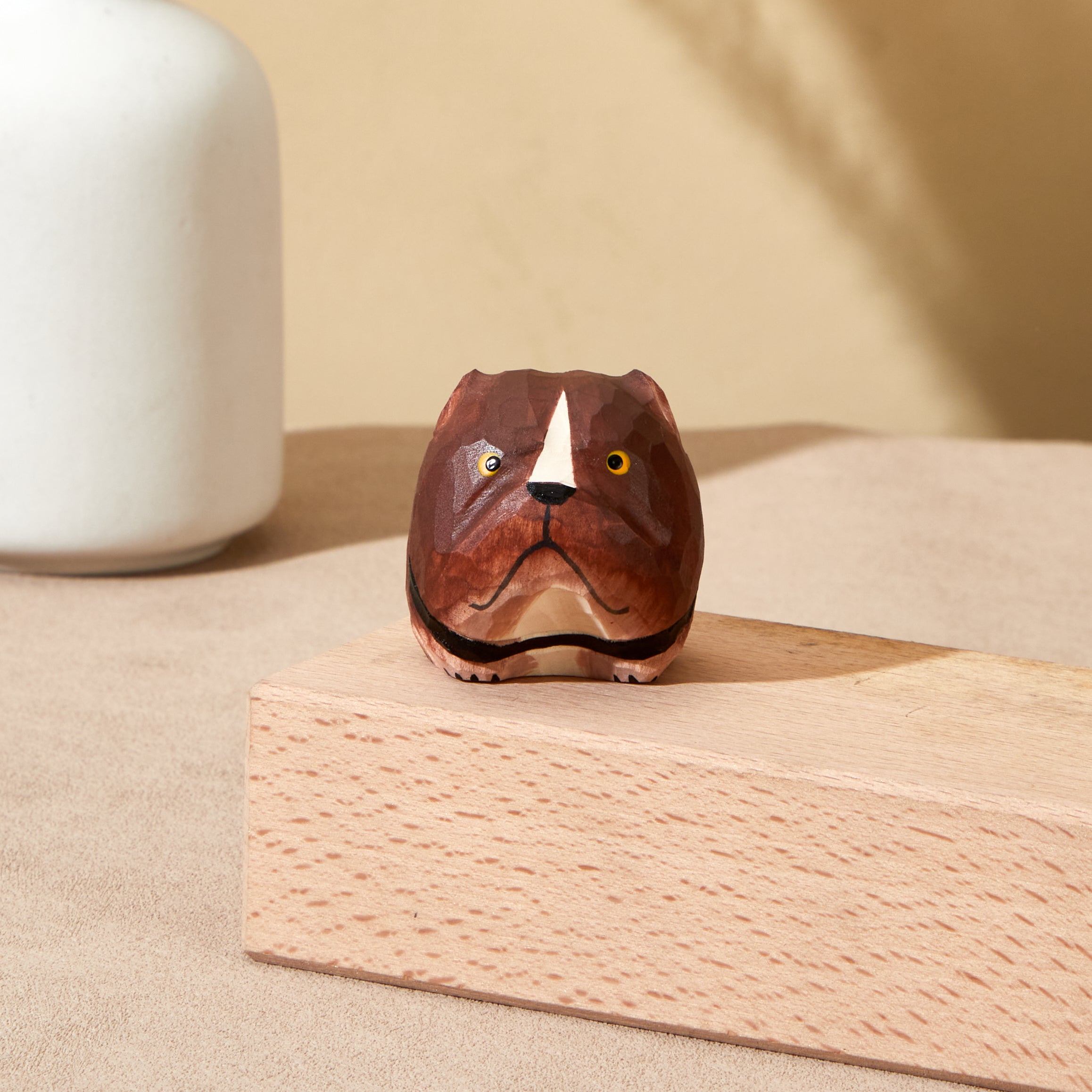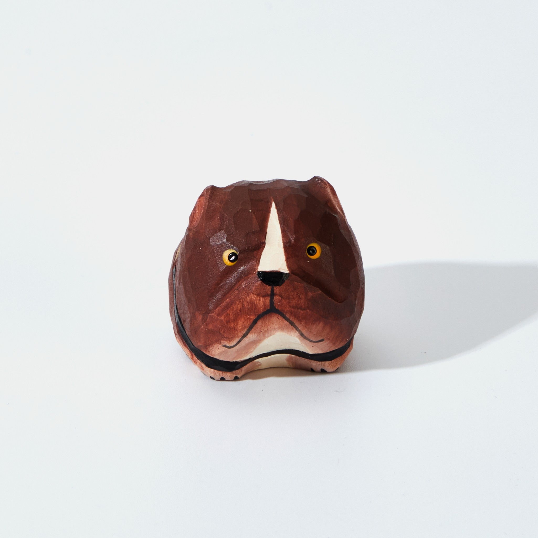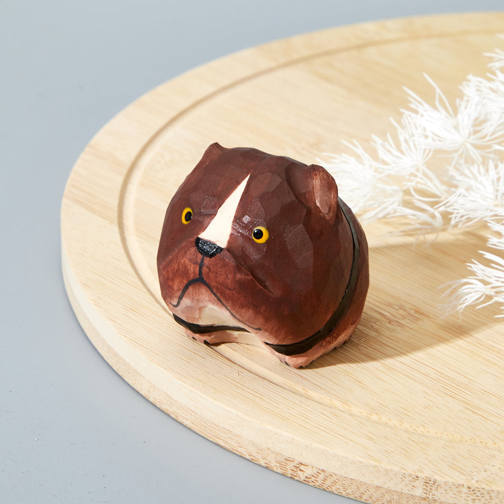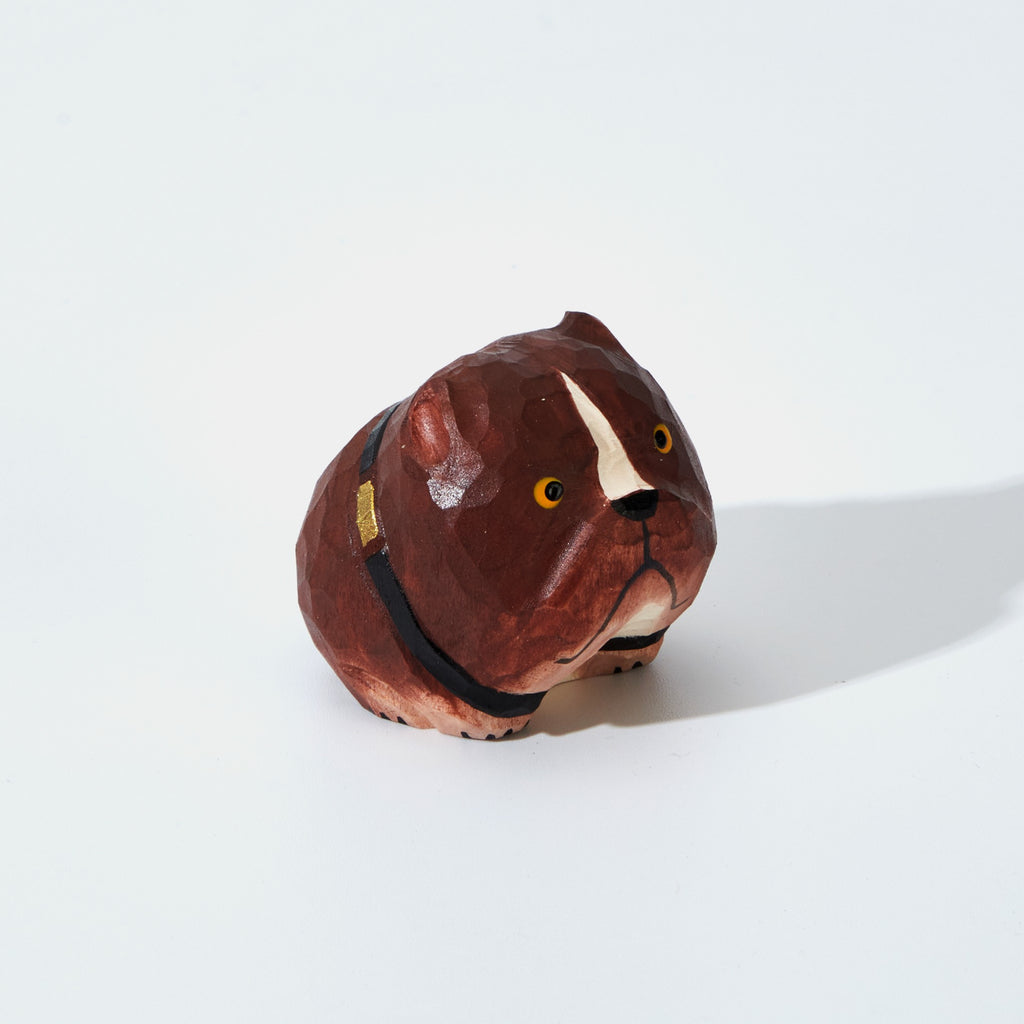Balin Carved Wooden Reddish-brown Bulldog Sitting Boldly