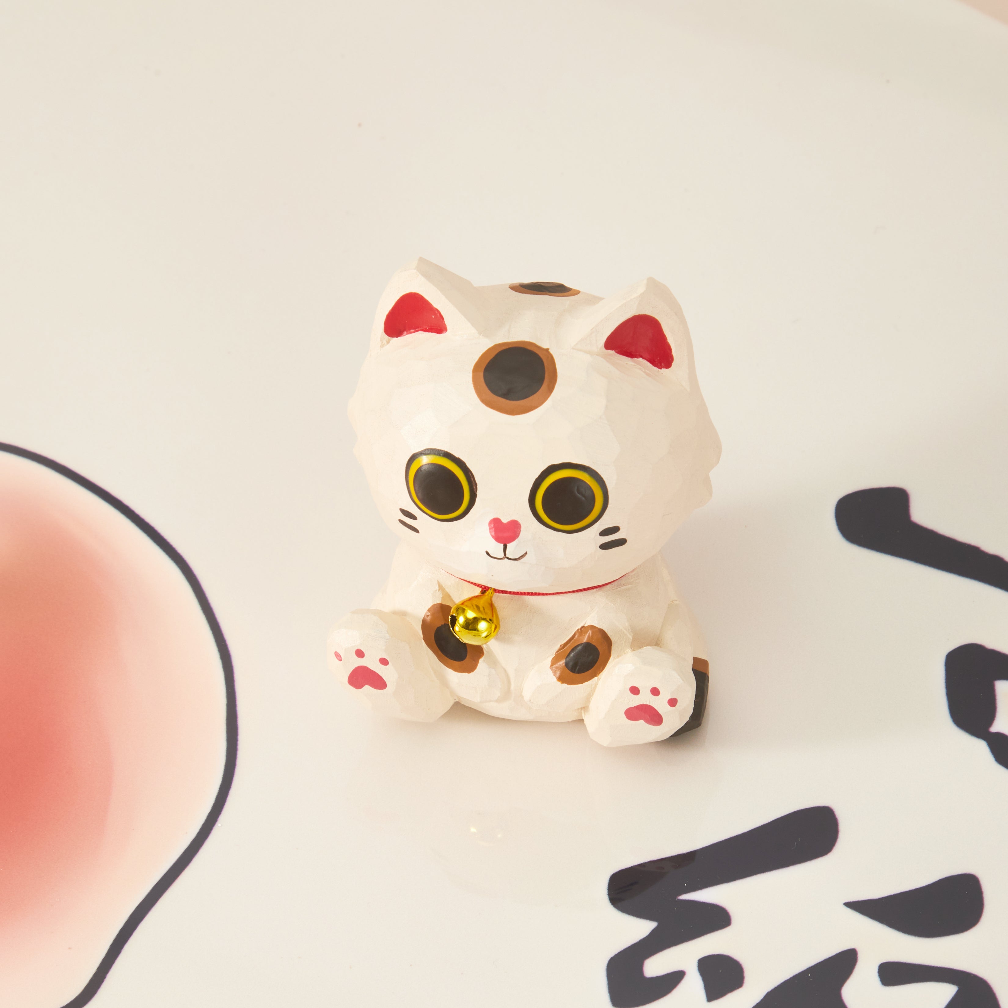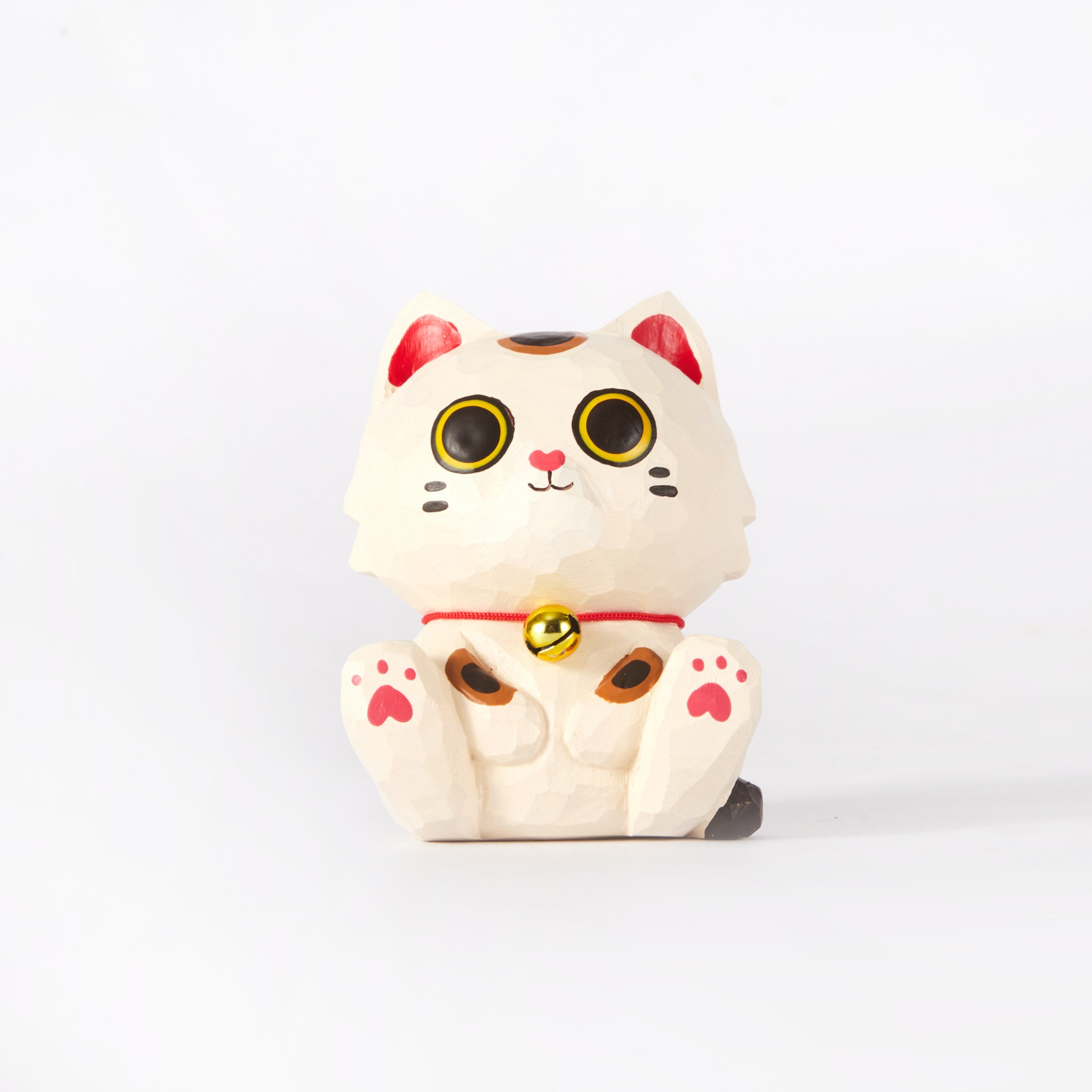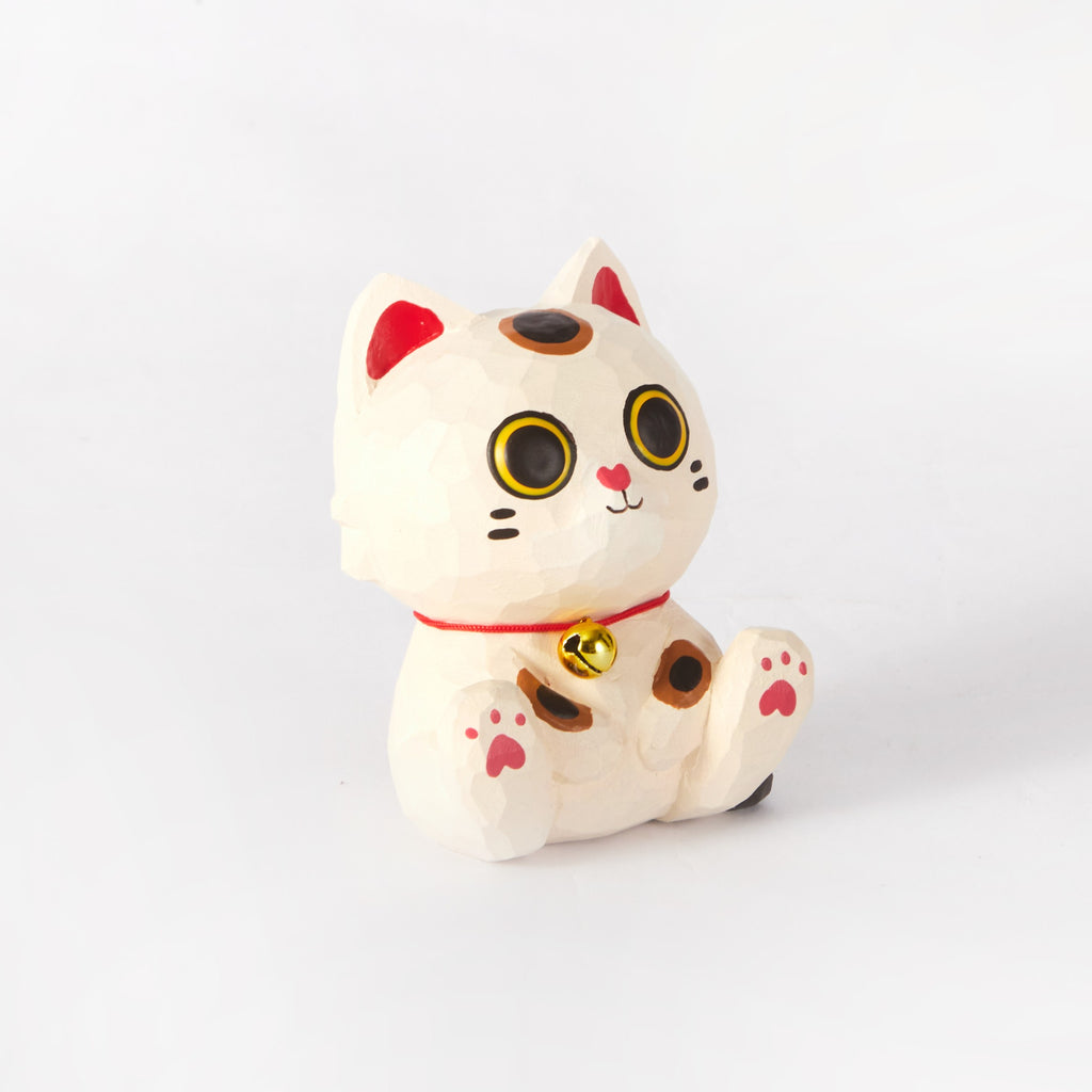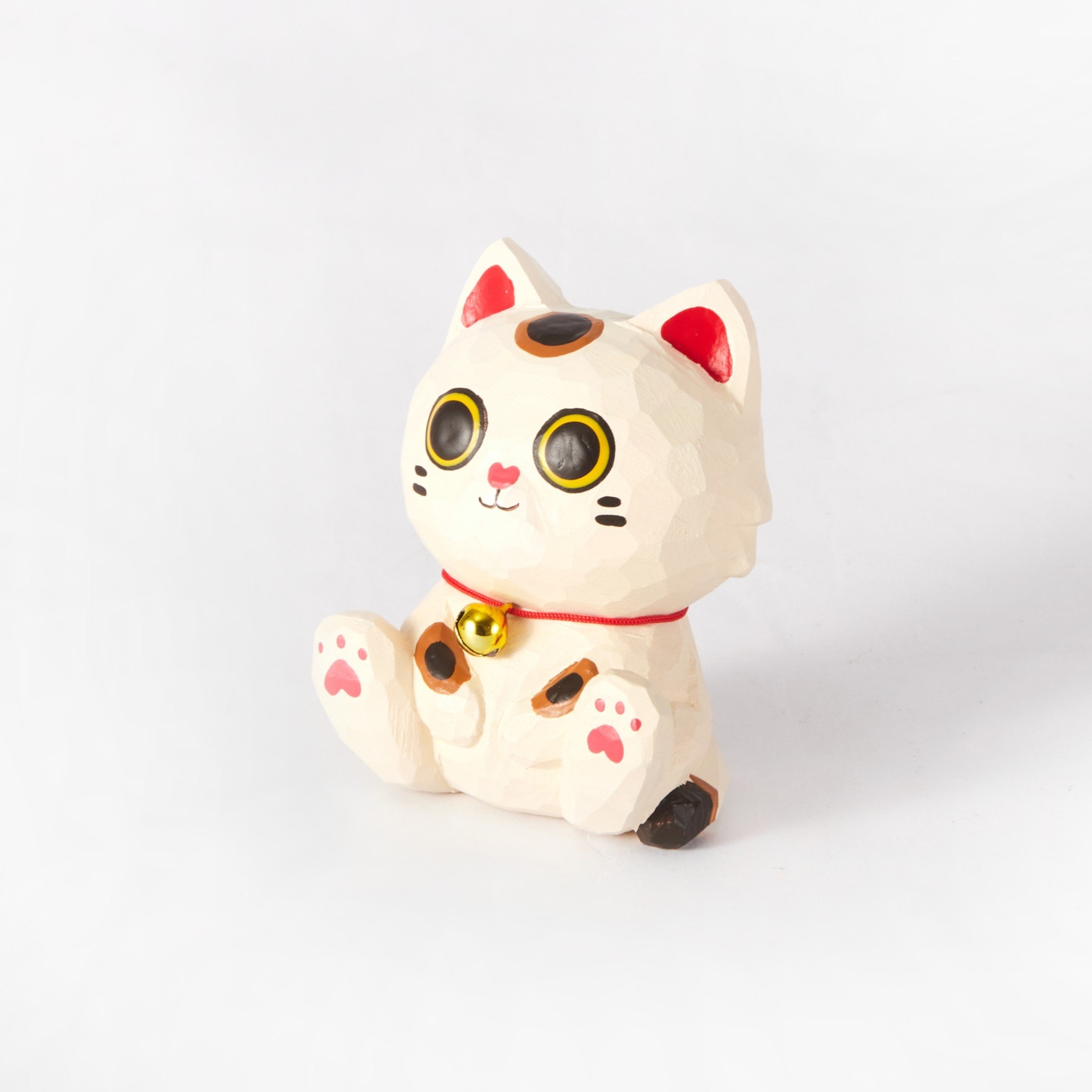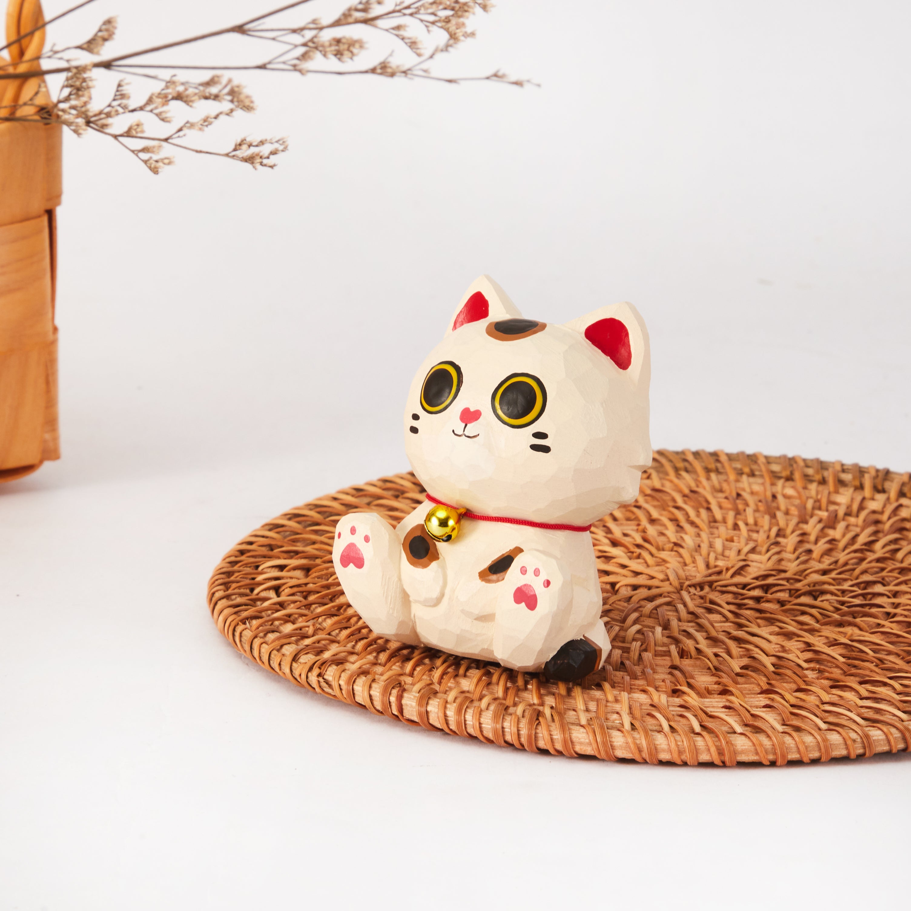Fuku Cat: Carved Wooden Cat with Luck and Blessing