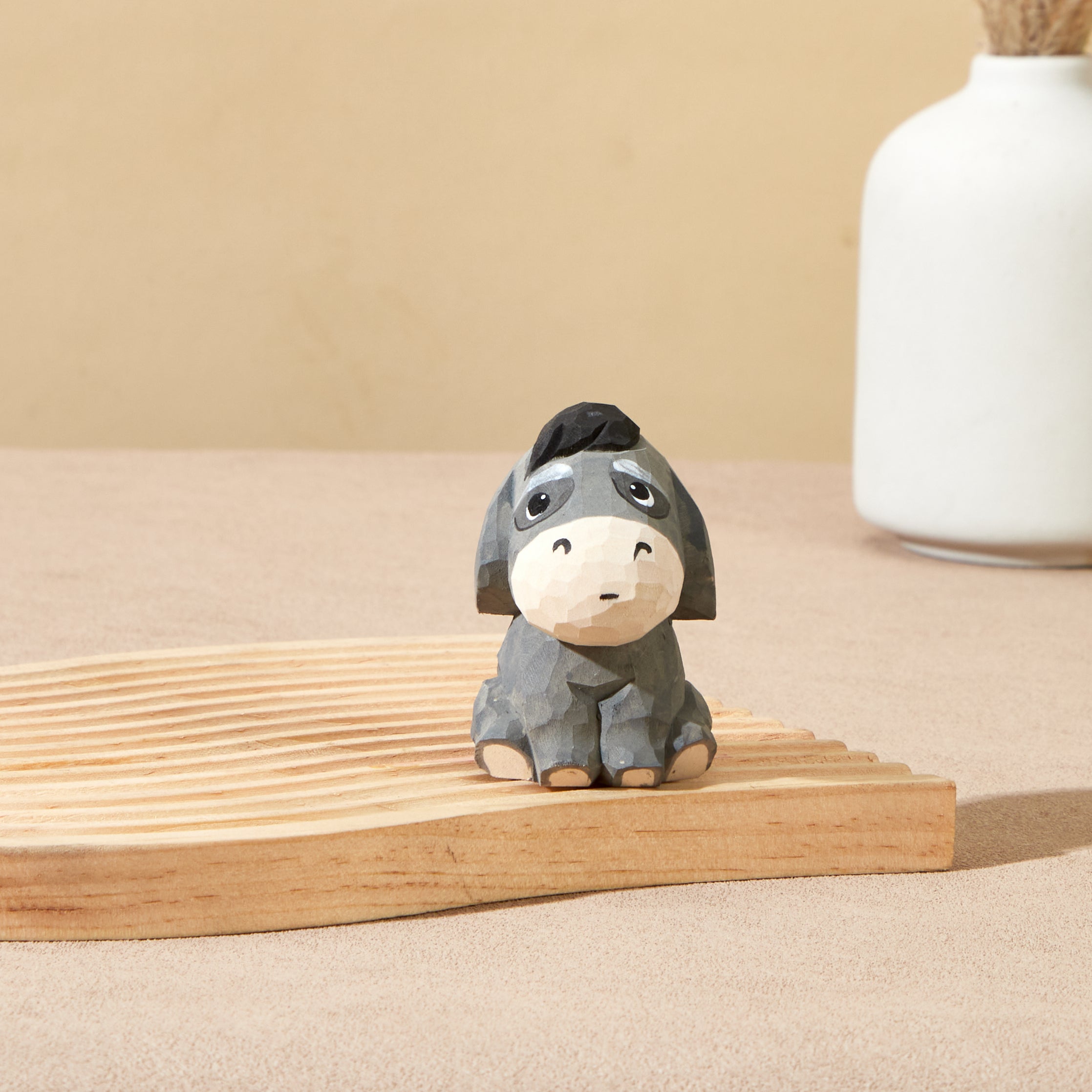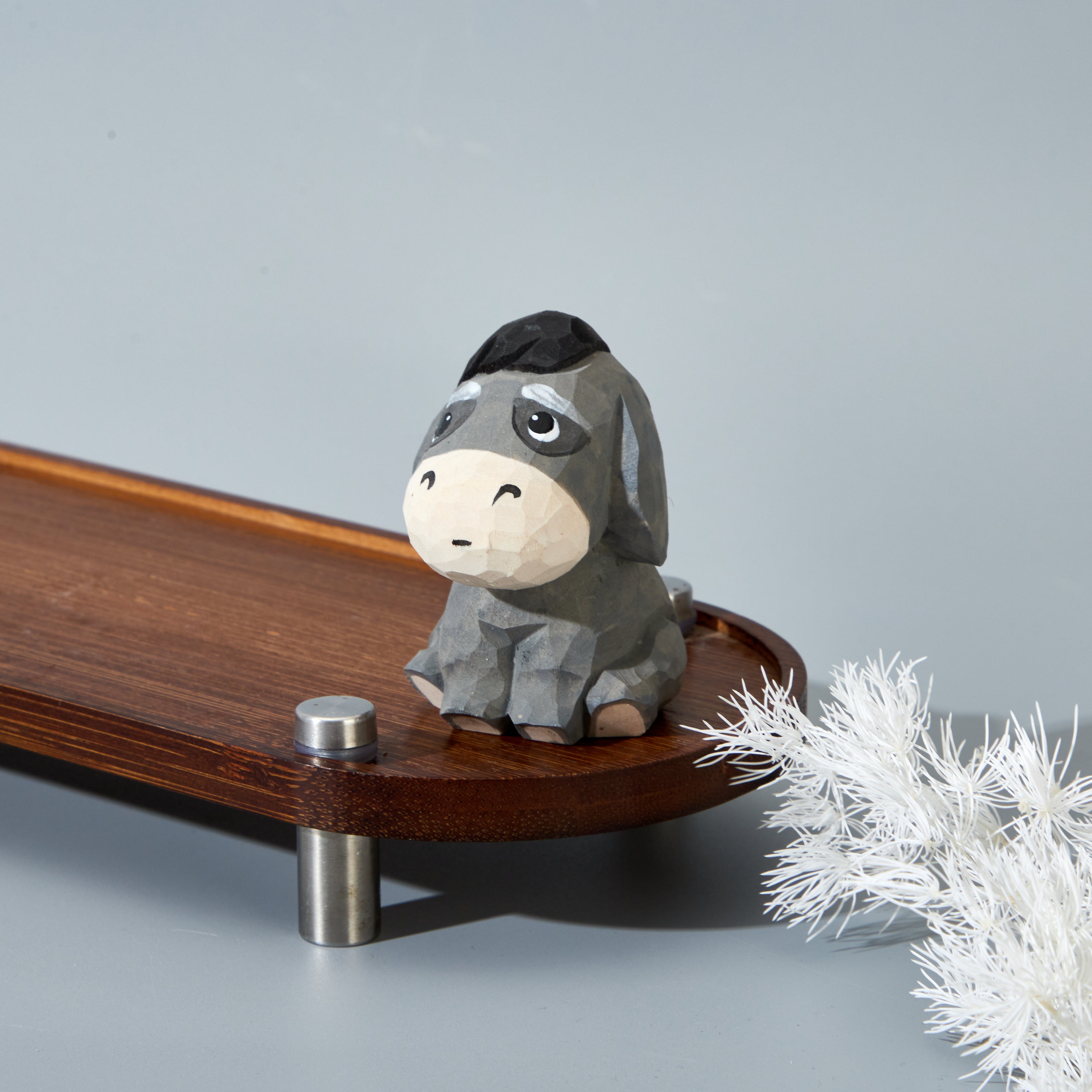 Haku Carved Wooden Donkey Hoping Silently