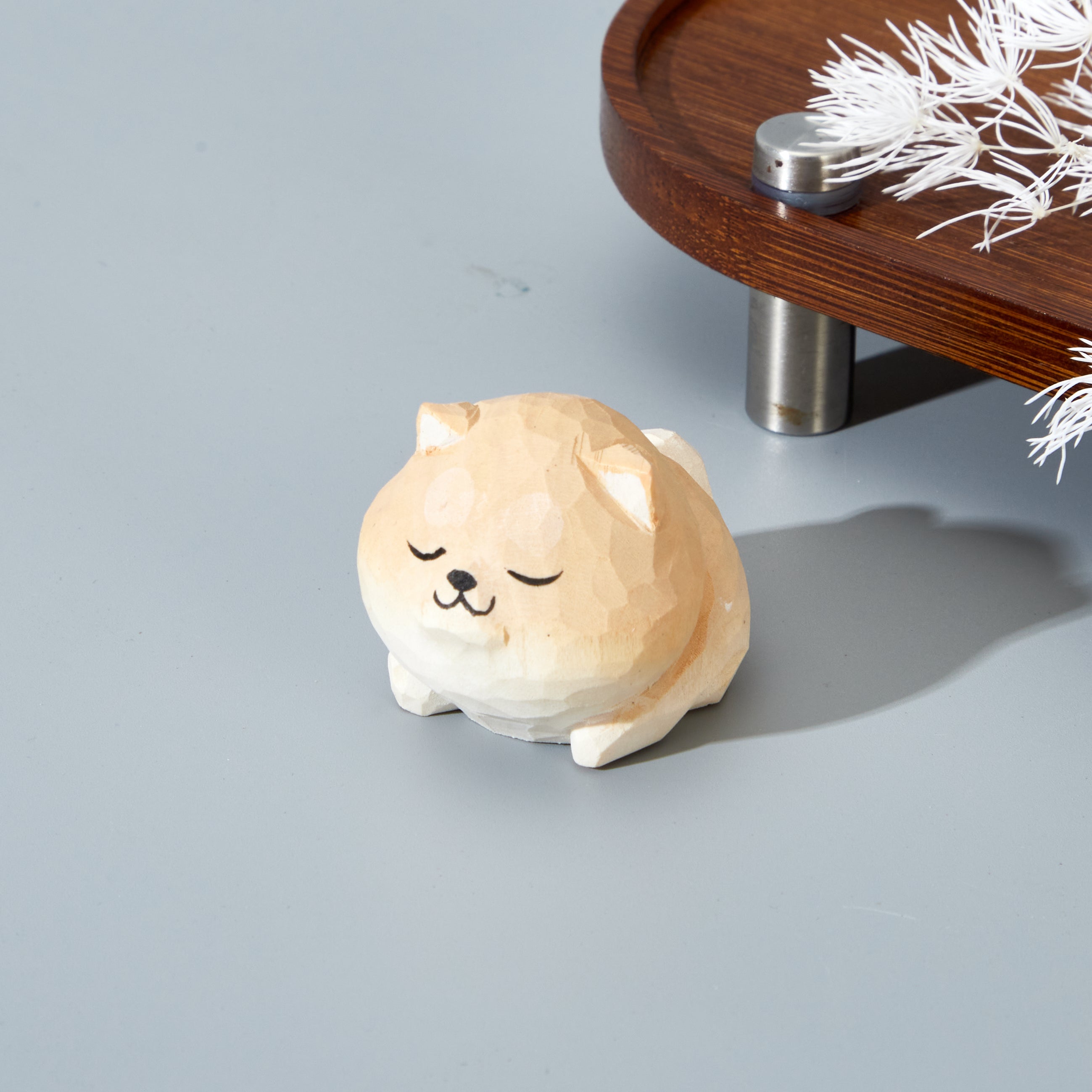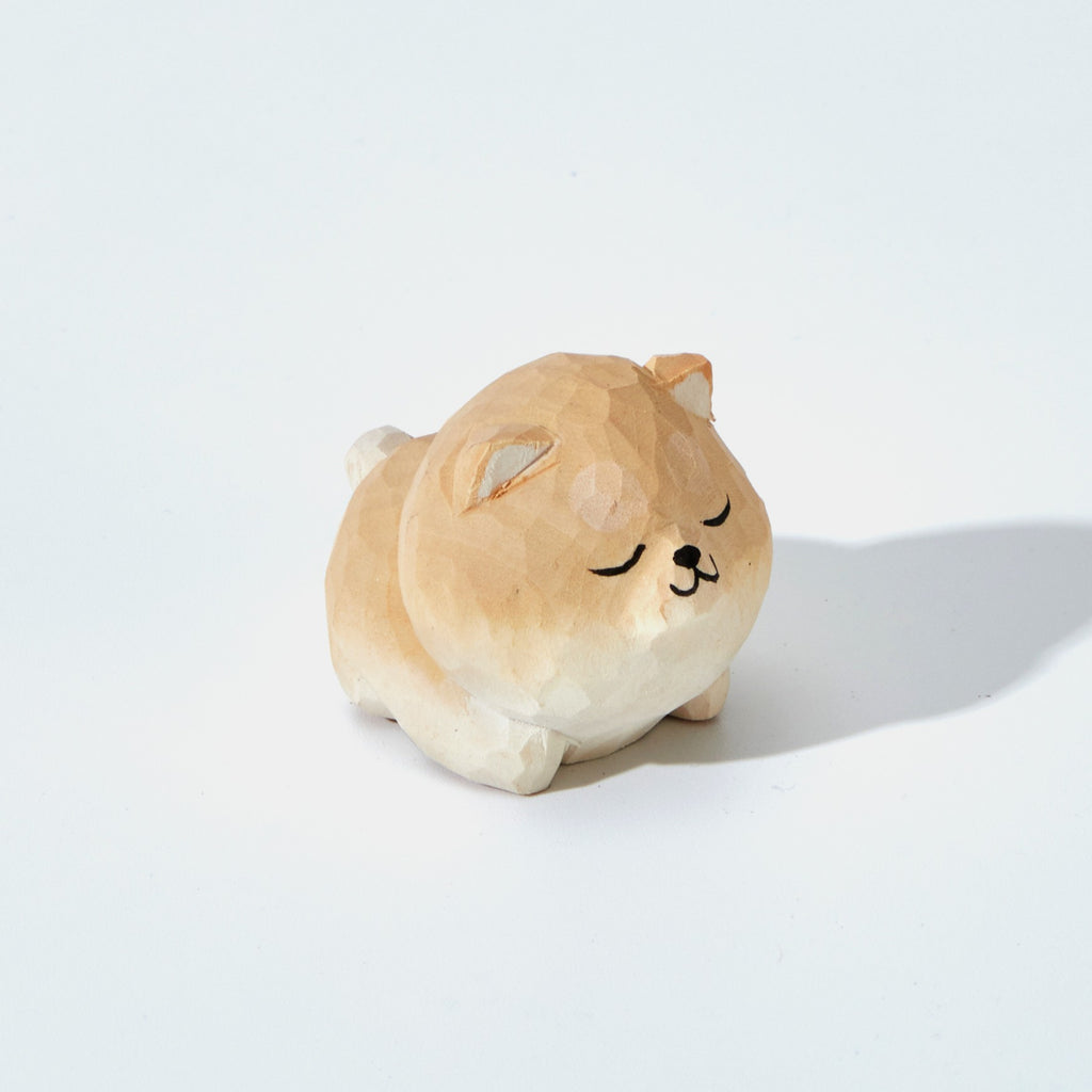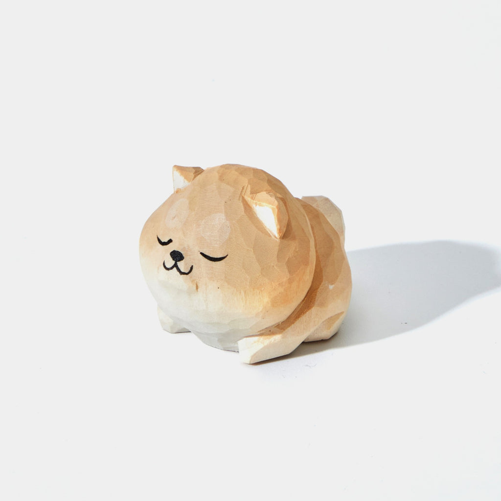 Sabi Carved Wooden Shiba Inu Dreaming Peacefully