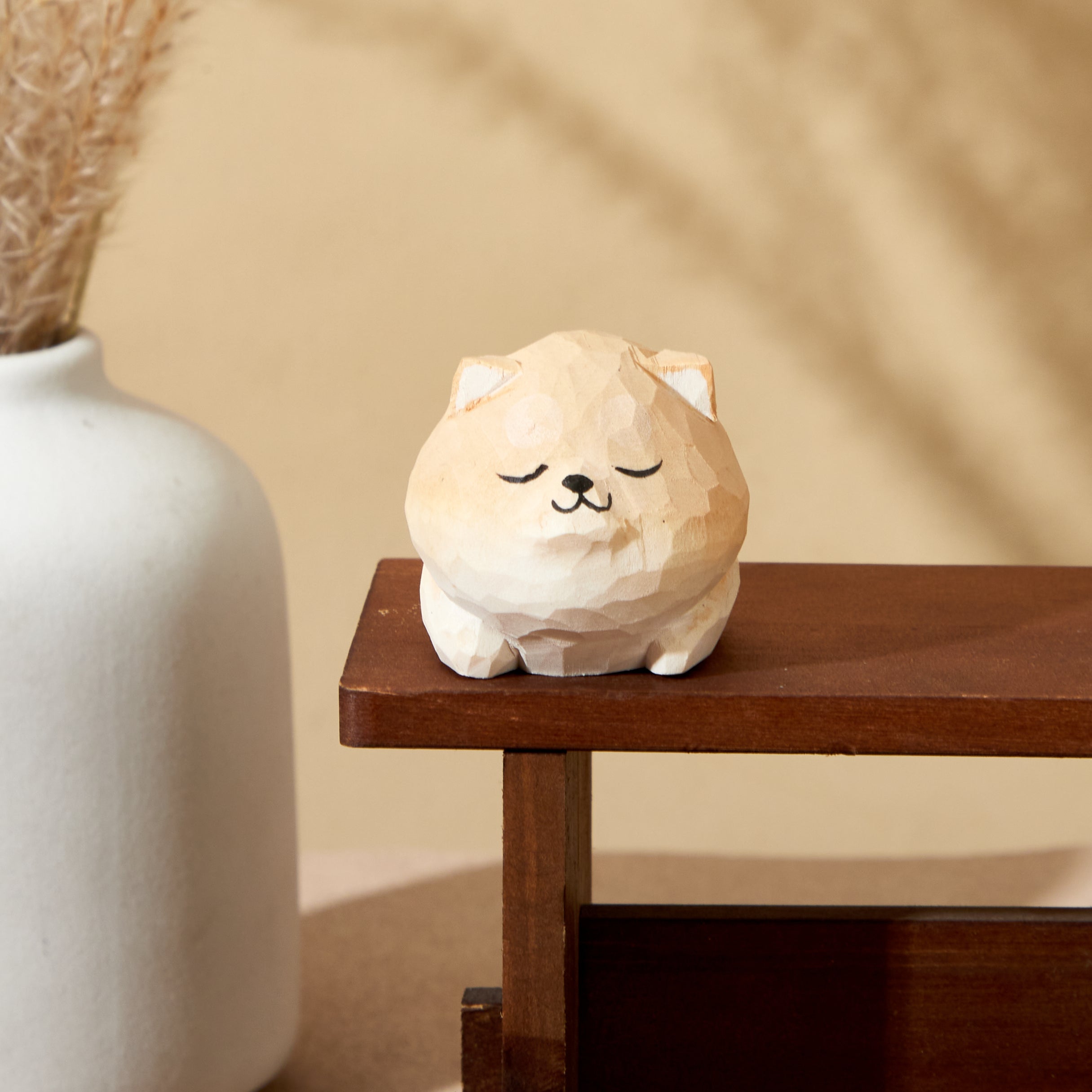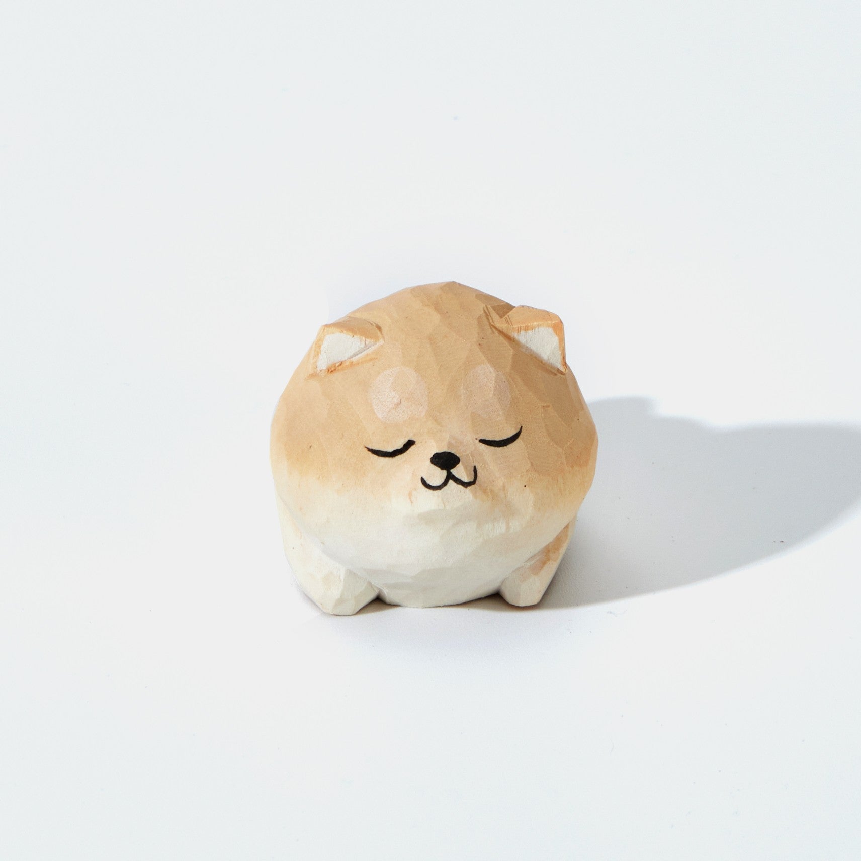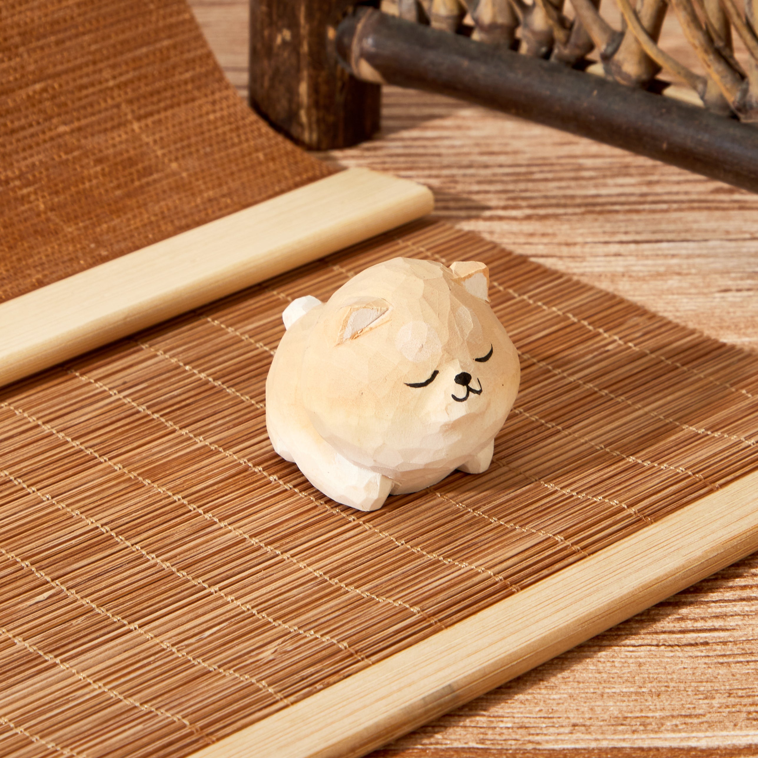Sabi Carved Wooden Shiba Inu Dreaming Peacefully